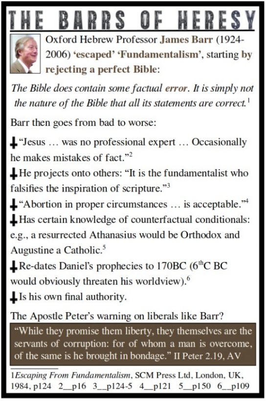 | The Barrs of Heresy | Hebrew Scholar James Barr (1924-2006) had to jettison the Bible to 'escape fundamentalism'. | 20250622-The Barrs of Heresy.jpg | 20250622 |