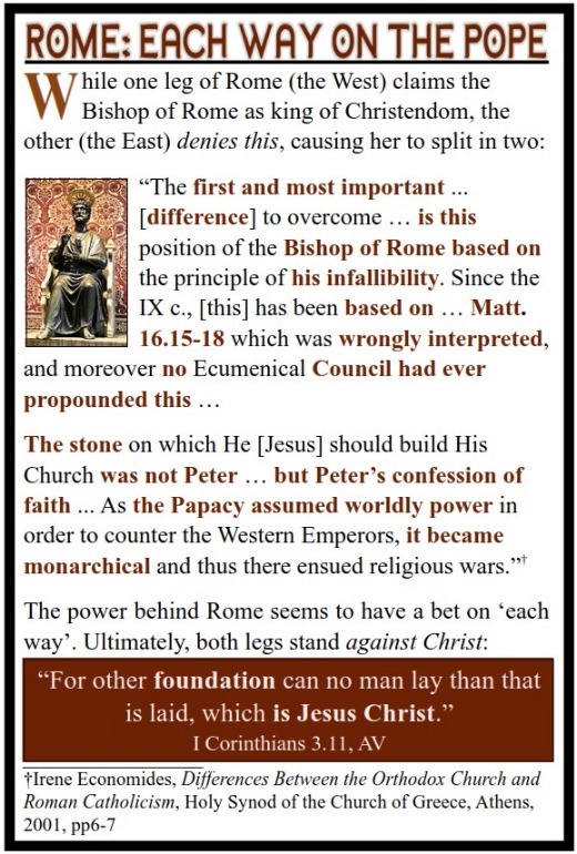 | Rome: Condemned by Witnesses | Rome denies its own witnesses regarding I John 5.7, as it reads in the AV's English today. | 20240513-Rome_Condemned by Witnesses.jpg | 20240513 |