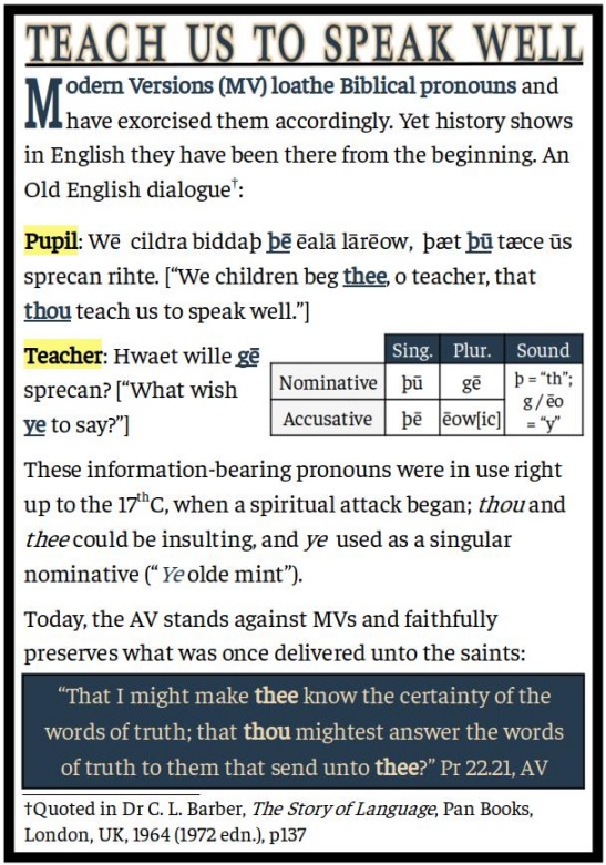 | Teach Us to Speak Well | Old English and Bible pronouns are to Modern Versions as garlic is to vampires. | 20250628-Teach Us to Speak Well.jpg | 20250628 |