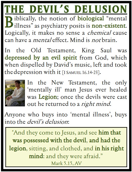 | Gospel of Medical Misery | Psychiatrists and Pharma construct a devilish money-machine on lies, blinding people to the only hope found in God. | 20220426-Gospel of Medical Misery.png | 20220426 |