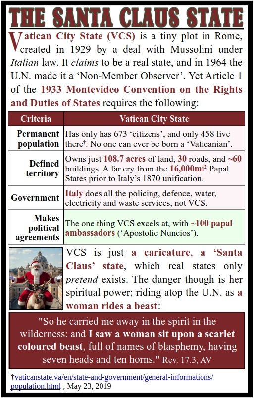 | Santa Equals Satan | The charming old man in a red suit is just a clever disguise for Lucifer to imitate the most High. | 20211221-Santa Equals Satans.png | 20211221 |