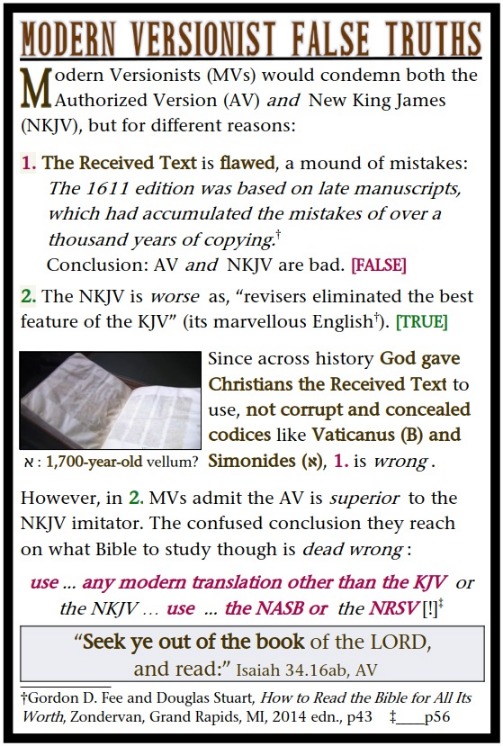 | Modern Versionist False Truths | Modern Versionists base their Bible recommendations on false 'truths'. | 20260228-Modern Versionist False Truths.jpg | 20260228 |
